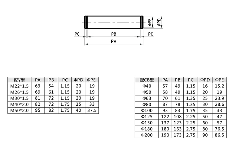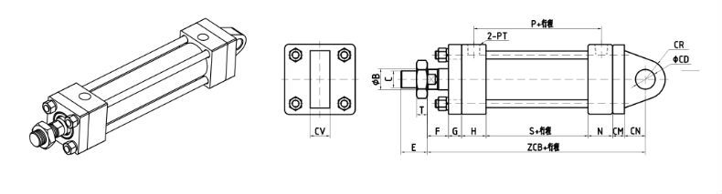 標(biāo)準(zhǔn)HOB+CB型 雙耳型外形安裝尺寸圖