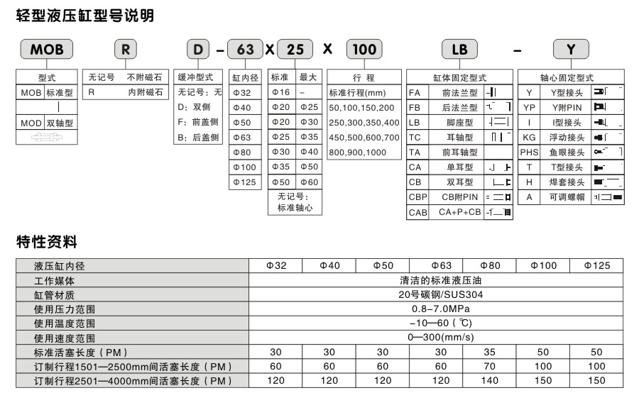 4)按照以上三條,可按照以下MOB油缸型號(hào)說明,明確您需要的型號(hào);