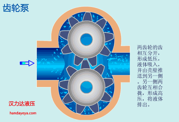 液壓泵包含齒輪泵、葉片泵、柱塞泵、螺桿泵。以下動(dòng)畫演示油泵工作原理