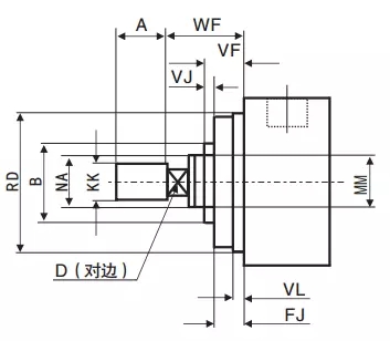 ■活塞桿端尺寸:定位臺(tái)階RD、活塞桿直徑NA、螺紋尺寸KK、突出的桿長(zhǎng)尺寸,見(jiàn)下圖所示。