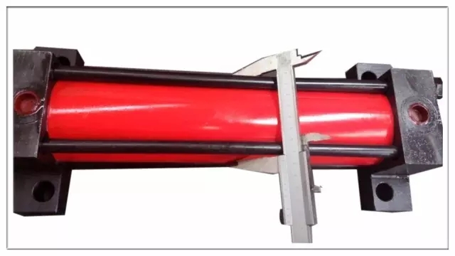 3)測(cè)量油缸的缸筒內(nèi)徑和外徑,根據(jù)壁厚的尺寸,我們計(jì)算使用壓力。